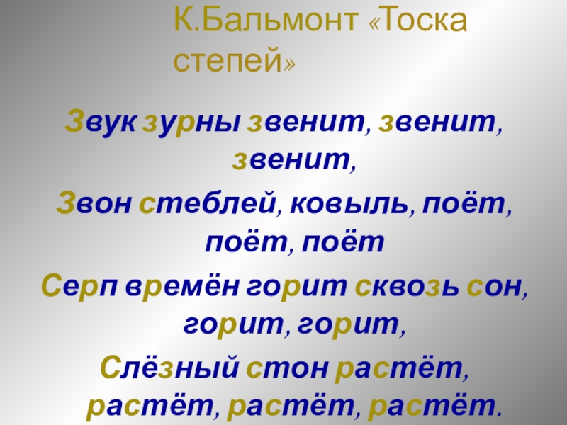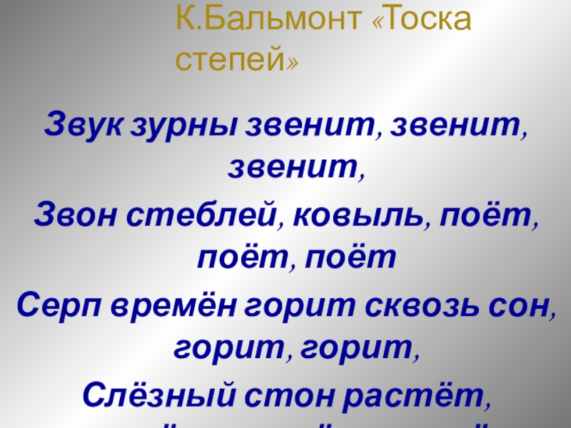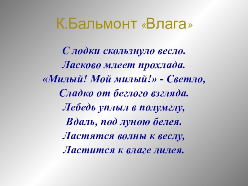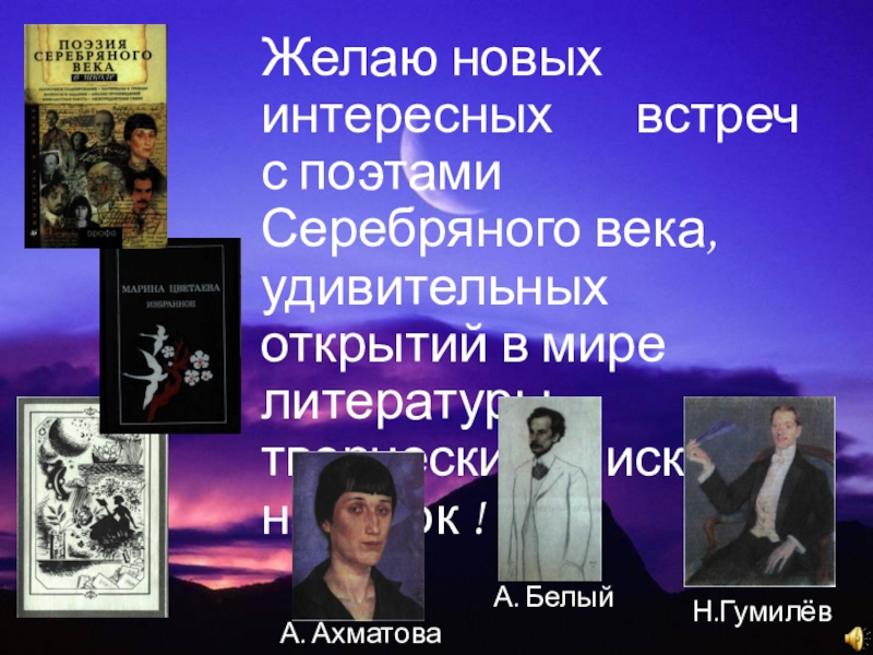 прослушать стихи К. Бальмонта, И. Северянина, В. Хлебникова