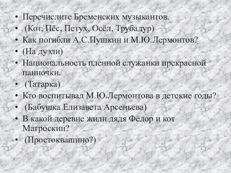 (Кот, Пёс, Петух, Осёл, Трубадур)