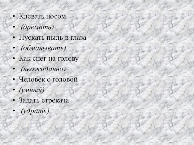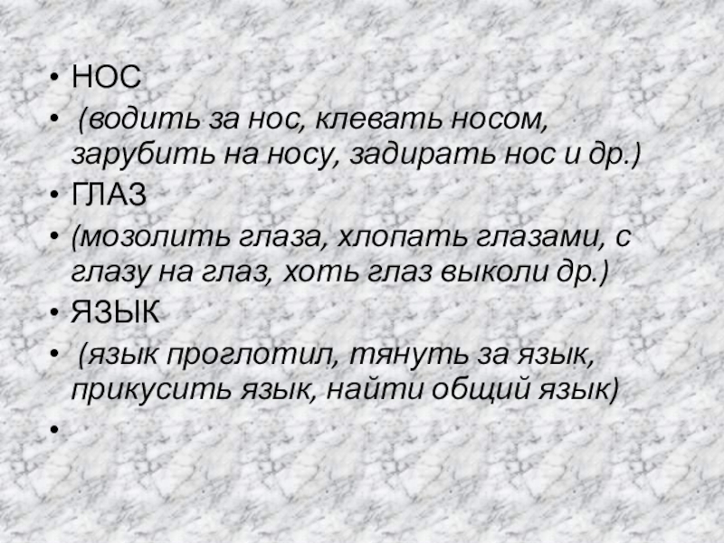 (водить за нос, клевать носом, зарубить на носу, задирать нос и