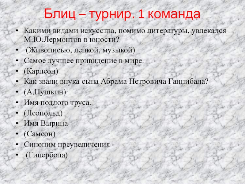 Какими видами искусства, помимо литературы, увлекался М.Ю.Лермонтов