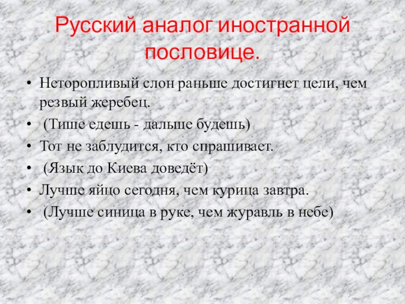 Неторопливый слон раньше достигнет цели, чем резвый жеребец.