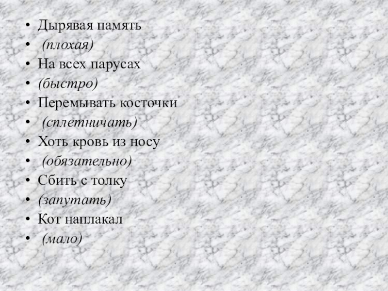 (с левой ноги, поперек горла, в тупик, поперёк дороги).