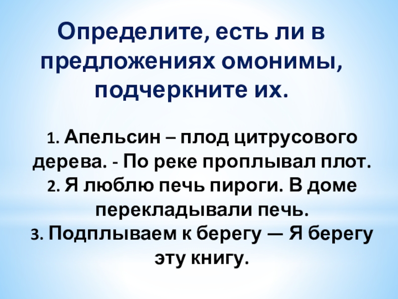 Определите, есть ли в предложениях омонимы, подчеркните их.