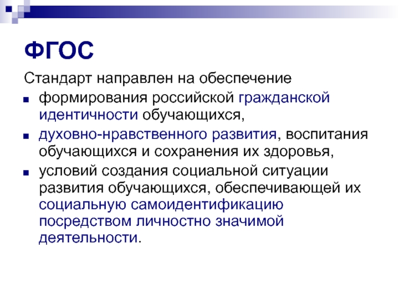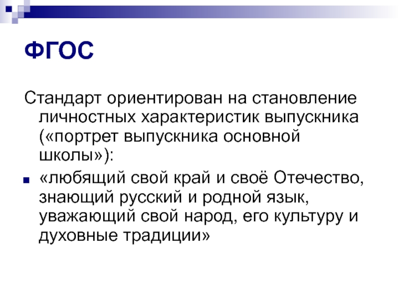 Стандарт ориентирован на становление личностных характеристик выпускника («портрет выпускника основной школы»):