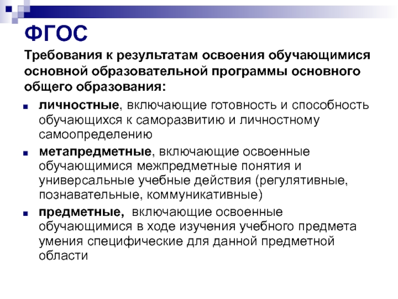 Требования к результатам освоения обучающимися основной образовательной программы основного общего
