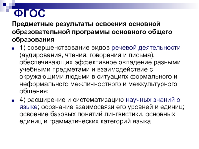 4) расширение и систематизацию научных знаний о языке; осознание взаимосвязи его уровней и единиц; освоение базовых понятий лингвистики, основных единиц и грамматических категорий языка