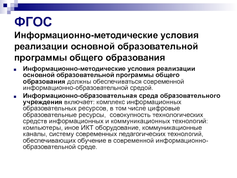 основной образовательной программы общего образования должны обеспечиваться современной информационно-образовательной средой.