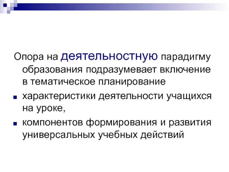Опора на деятельностную парадигму образования подразумевает включение в тематическое планирование