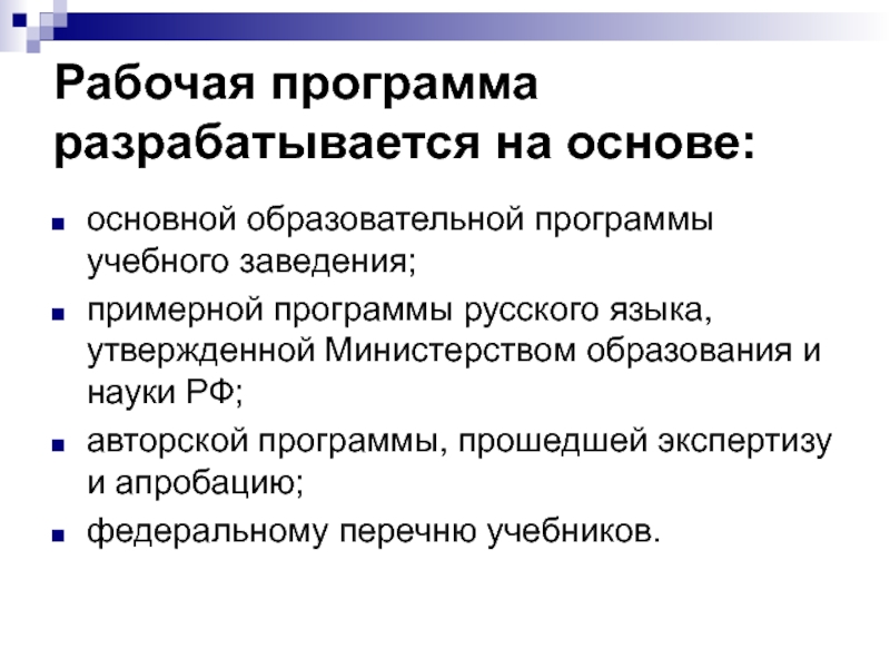 Слайд 1РАБОЧАЯ ПРОГРАММА ПО РУССКОМУ ЯЗЫКУ