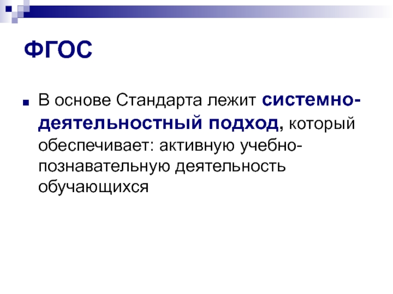 В основе Стандарта лежит системно-деятельностный подход, который обеспечивает: активную учебно-познавательную деятельность