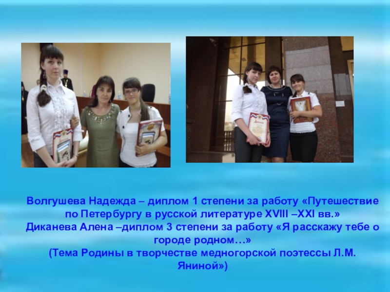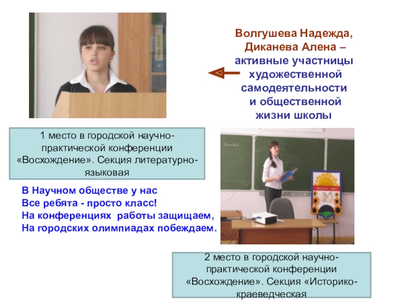 1 место в городской научно-практической конференции «Восхождение». Секция литературно-языковая