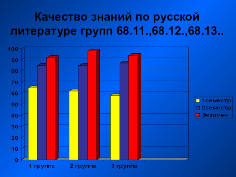 Слайд 150Качество знаний по русской литературе групп 68.11.,68.12.,68.13..