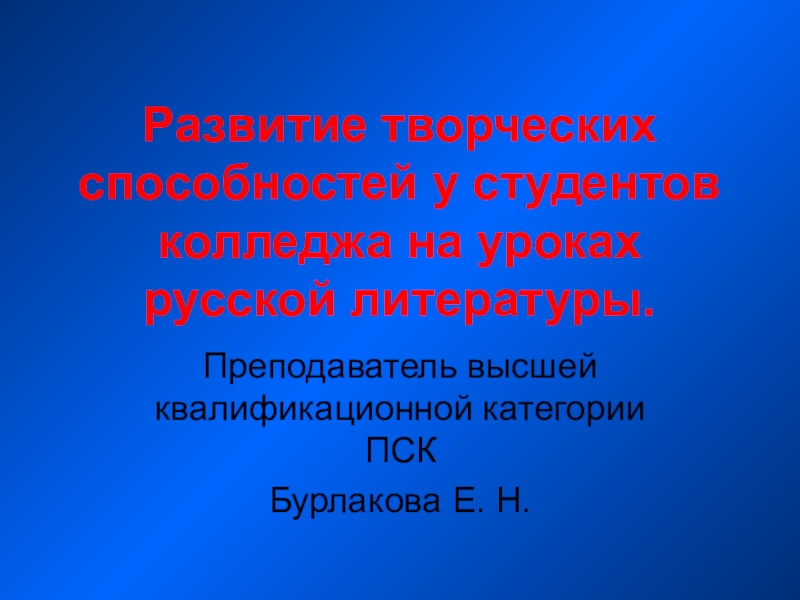 Слайд 1Развитие творческих способностей у студентов колледжа на уроках русской литературы.
