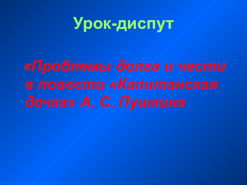 «Проблемы долга и чести в повести «Капитанская дочка» А. С.