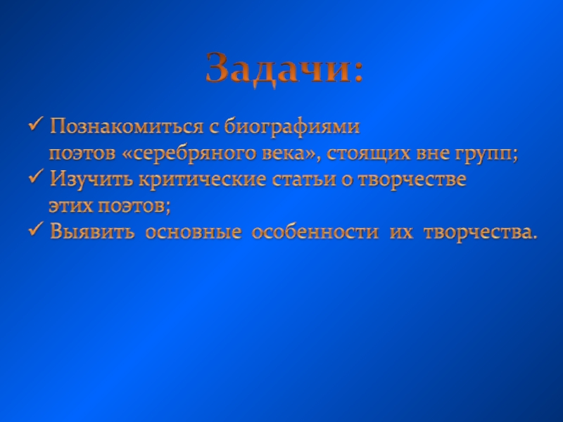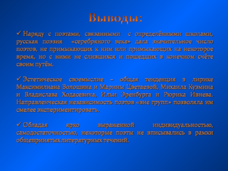 Слайд 14Тема проекта: Поэзия «серебряного века».