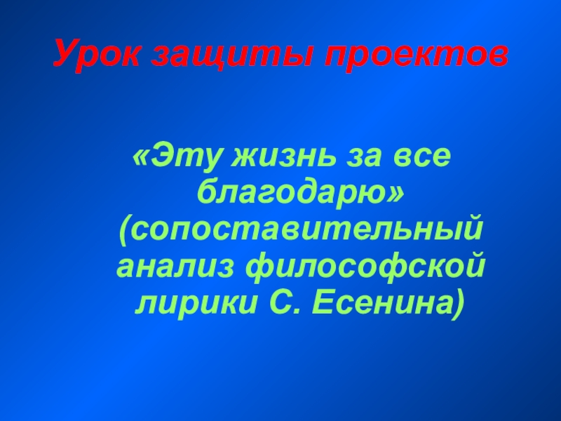 «Эту жизнь за все благодарю» (сопоставительный анализ философской лирики