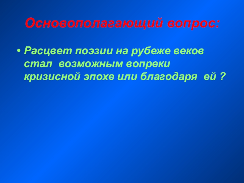 Расцвет поэзии на рубеже веков стал возможным вопреки кризисной