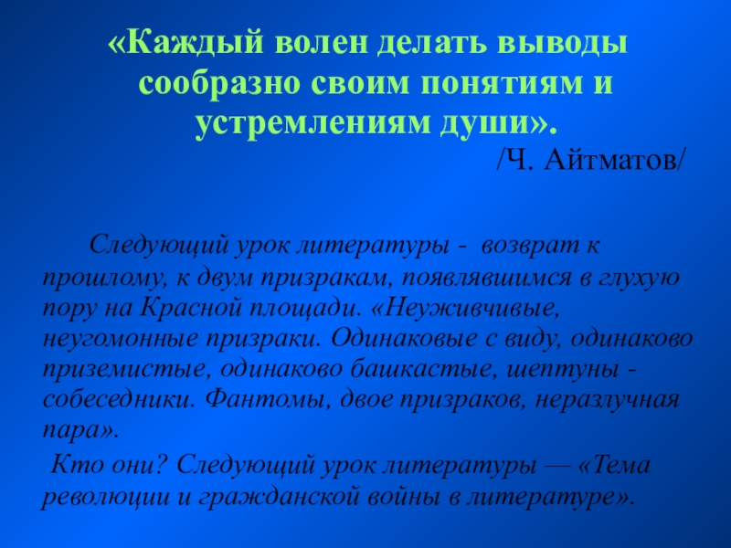 учить смотреть на литературу как на возможность осмысления философско- эстетических и нравственных проблем.
