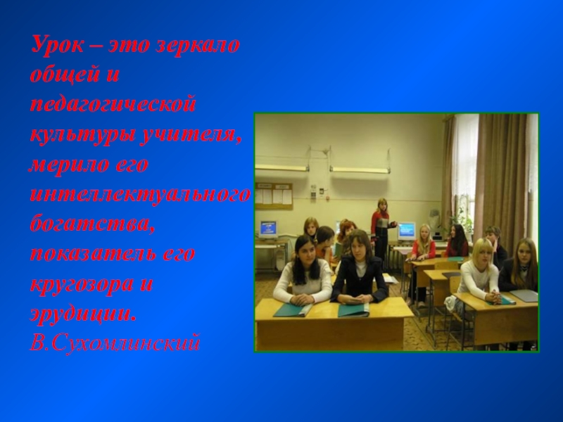 Слайд 5Урок – это зеркало общей и педагогической культуры учителя, мерило его