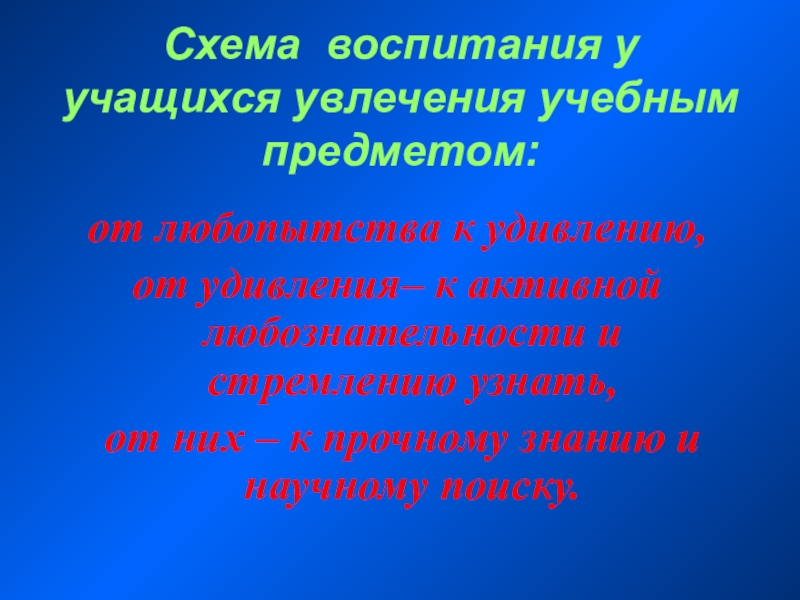 Слайд 7Схема воспитания у учащихся увлечения учебным предметом: