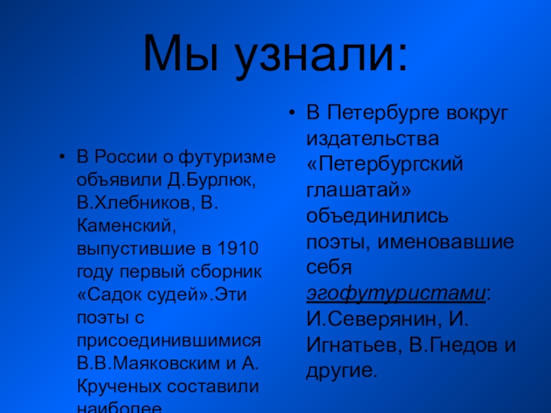 В чем проявилась мессианская роль поэтов – футуристов (тайновидцев и пророков)?