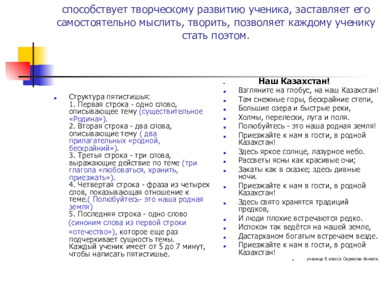4. Четвертая строка - фраза из четырех слов, показывающая отношение к теме.( Полюбуйтесь- это наша родная земля)