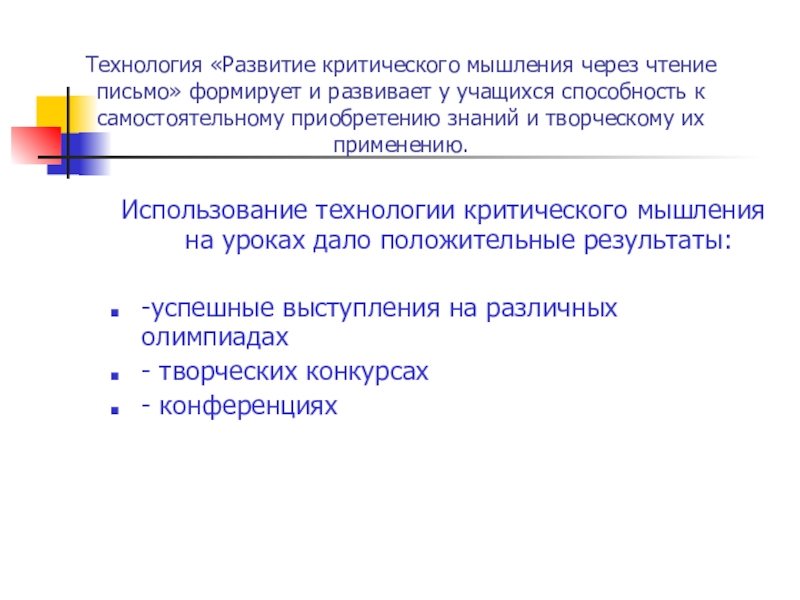 Использование технологии критического мышления на уроках дало положительные результаты: