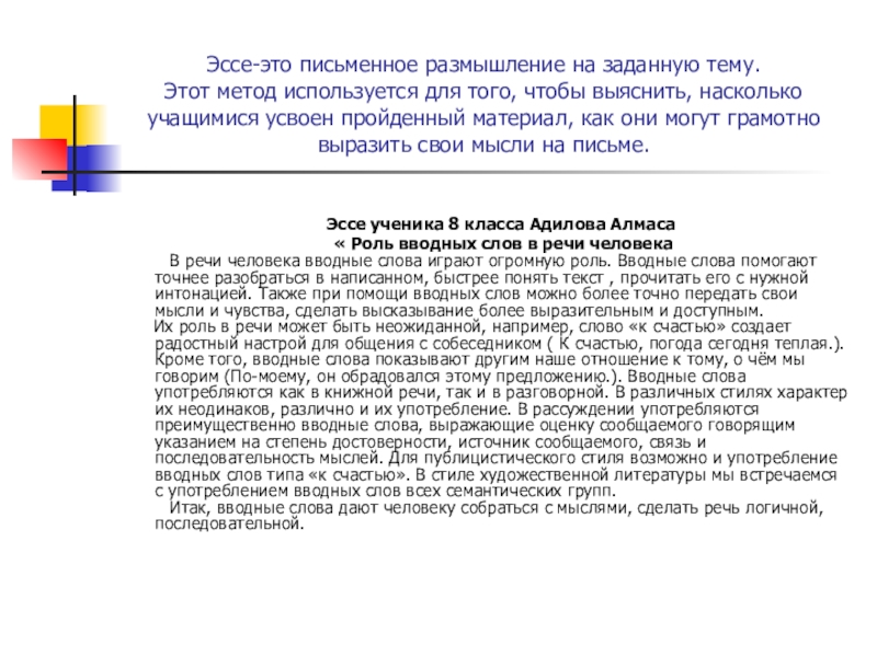 В речи человека вводные слова играют огромную роль. Вводные слова помогают точнее разобраться в написанном, быстрее понять текст , прочитать его с нужной интонацией. Также при помощи вводных слов можно более точно передать свои мысли и чувства, сделать высказывание более выразительным и доступным.