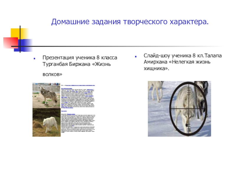 Слайд-шоу ученика 8 кл.Талапа Амирхана «Нелегкая жизнь хищника».