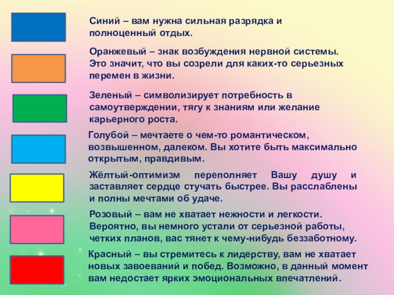 Синий – вам нужна сильная разрядка и полноценный отдых.