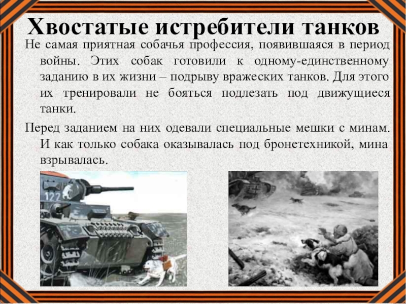 Слайд 12Собаки - диверсанты