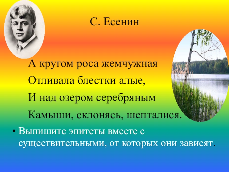 С. Есенин      А кругом роса жемчужная   Отливала блестки алые,