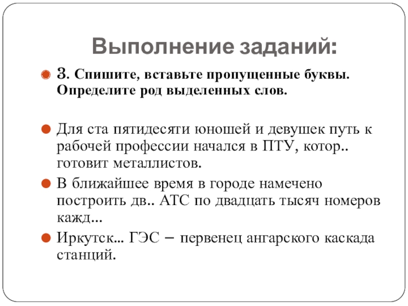 3. Спишите, вставьте пропущенные буквы. Определите род выделенных слов.