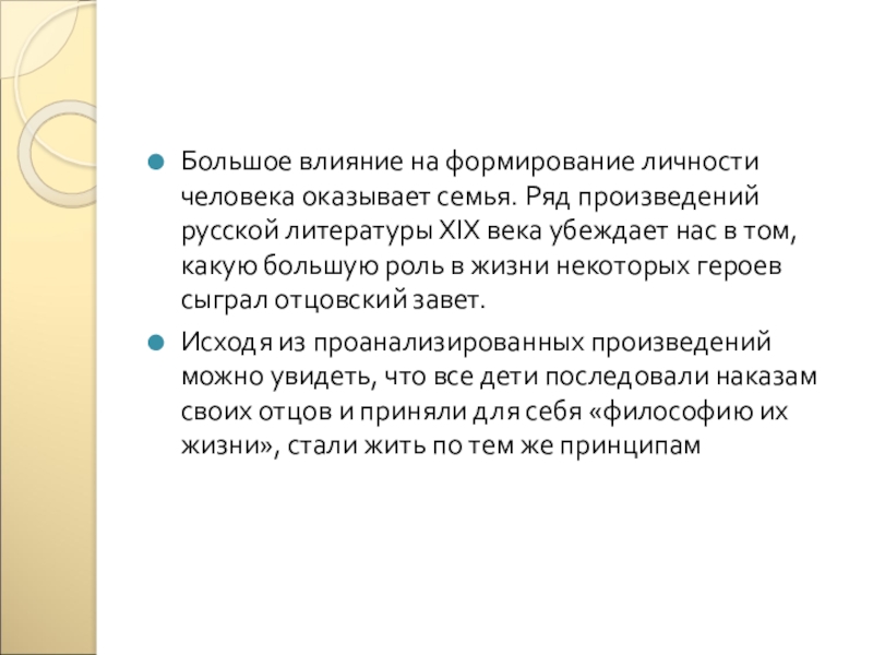 литературы XIX века убеждает нас в том, какую большую роль в жизни некоторых героев сыграл отцовский завет.