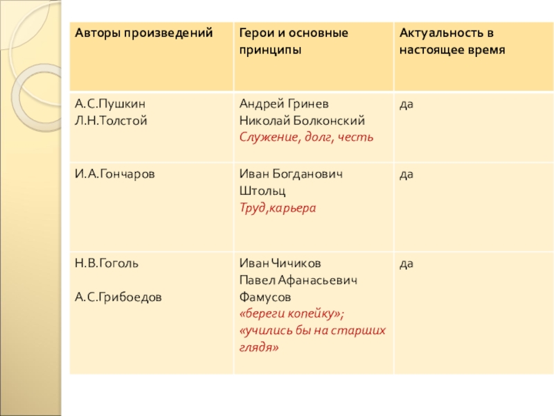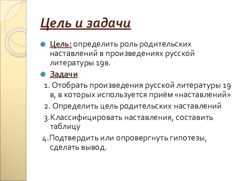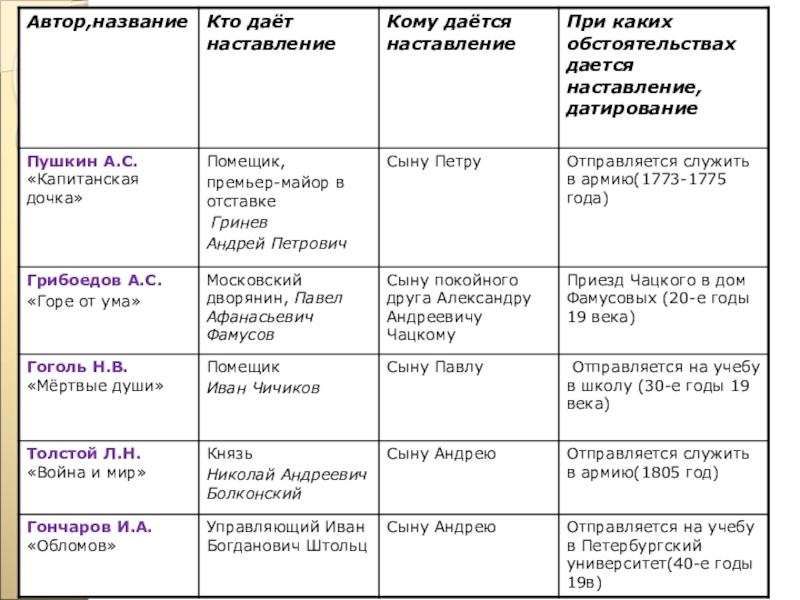 Цель: определить роль родительских наставлений в произведениях русской литературы