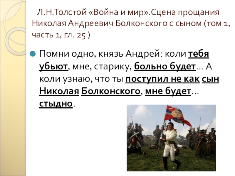 Слайд 11 Л.Н.Толстой «Война и мир».Сцена прощания Николая Андреевич Болконского с