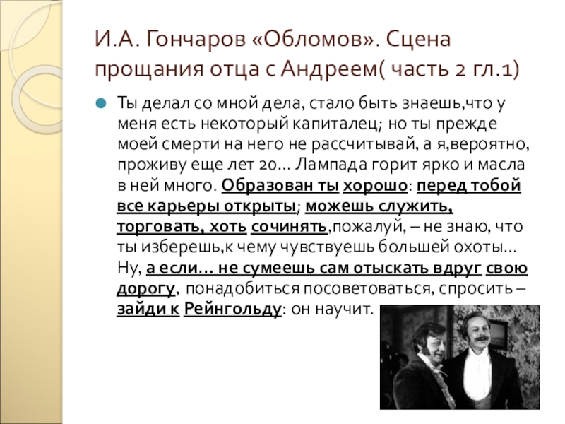 Слайд 10И.А. Гончаров «Обломов». Сцена прощания отца с Андреем( часть 2 гл.1)