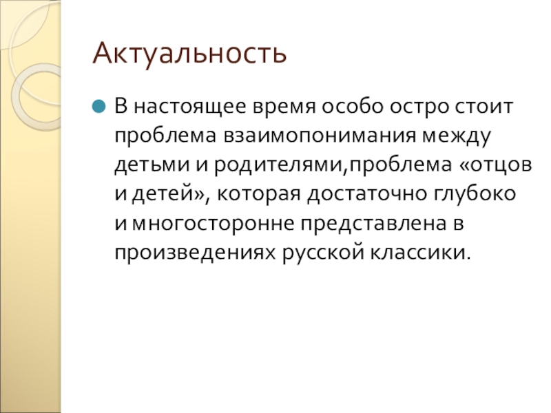 родителями,проблема «отцов и детей», которая достаточно глубоко и многосторонне представлена в произведениях русской классики.