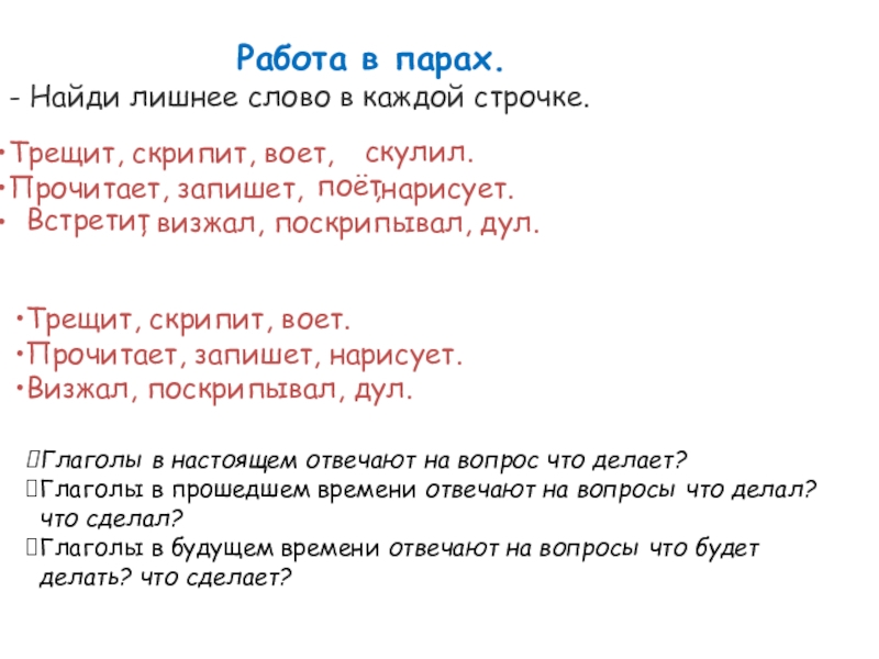 Глаголы в прошедшем времени отвечают на вопросы что делал? что сделал?
