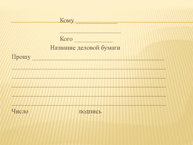 Кому _____________					___________________				  	Кого ____________				Название деловой бумагиПрошу _________________________________________________________________________________________________________________________________________________________________________________________________________________________________________________________________________________________Число 						подпись