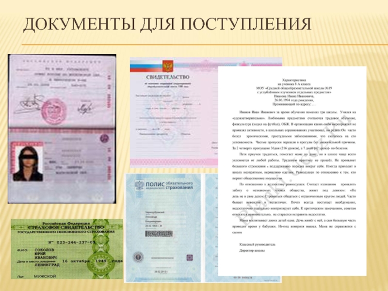 Слайд 10ДОКУМЕНТЫ ДЛЯ ПОСТУПЛЕНИЯ