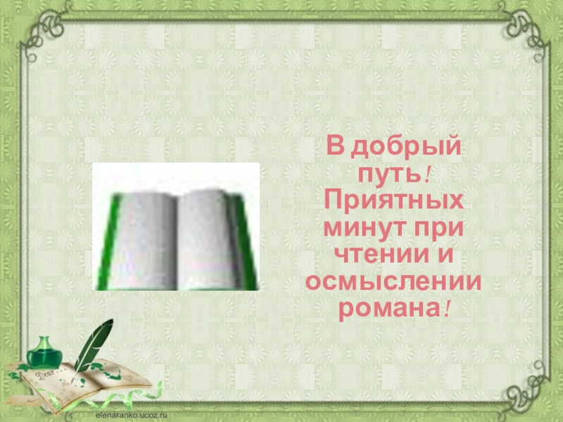Слайд 12 В добрый путь! Приятных минут при чтении и осмыслении романа!