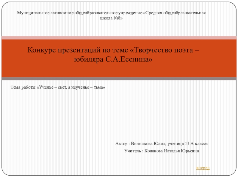 Конкурс презентаций по теме «Творчество поэта – юбиляра С.А.Есенина»