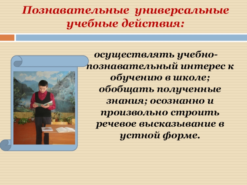 полученные знания; осознанно и произвольно строить речевое высказывание в устной форме.