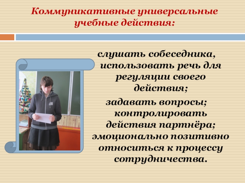 задавать вопросы; контролировать действия партнёра; эмоционально позитивно относиться к процессу сотрудничества.