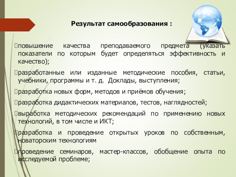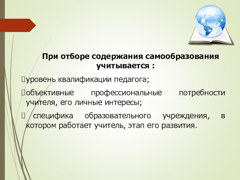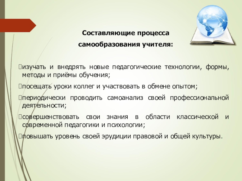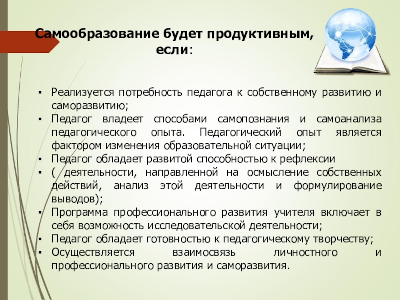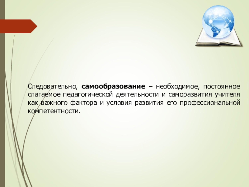 Следовательно, самообразование – необходимое, постоянное слагаемое педагогической деятельности и