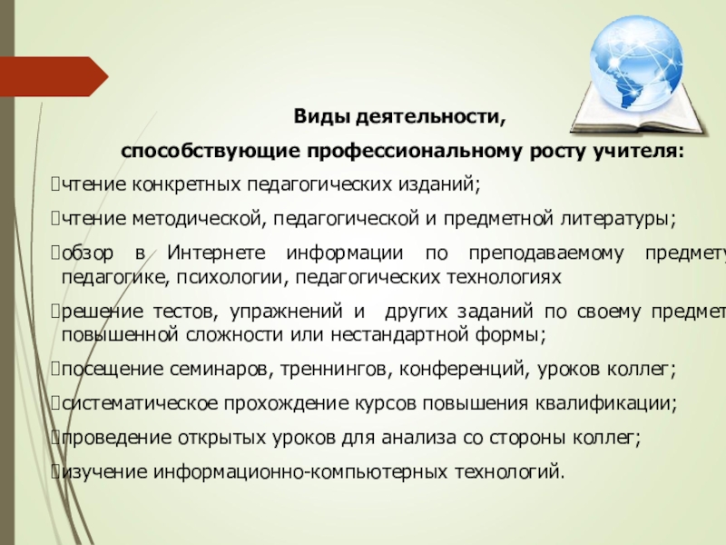 посещение семинаров, треннингов, конференций, уроков коллег;