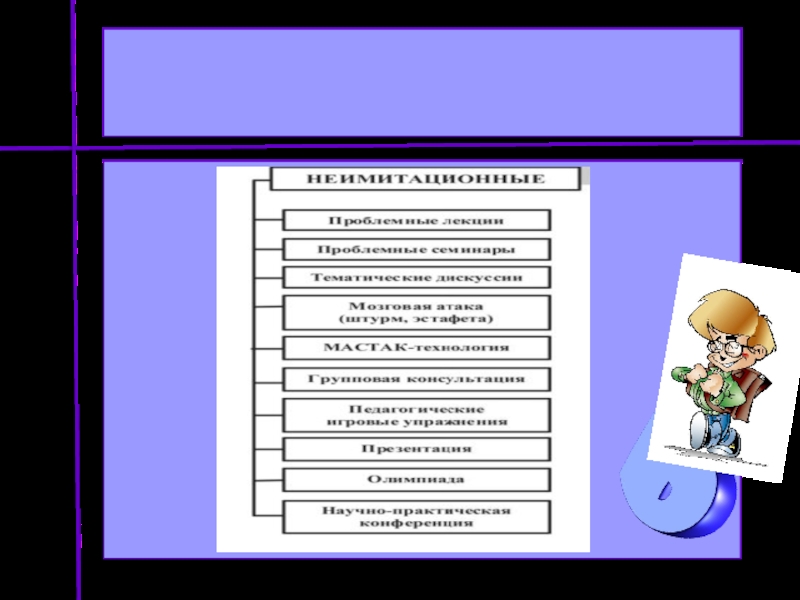 К непосредственно активным методам относятся методы, использующиеся внутри образовательного мероприятия, в процессе его проведения. Для каждого этапа урока используются свои активные методы, позволяющие эффективно решать конкретные задачи этапа.