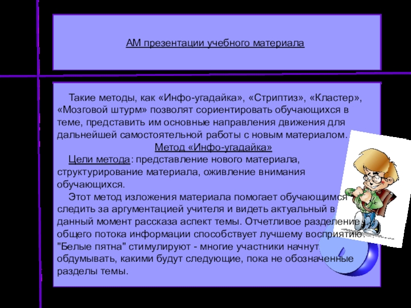 Такие методы, как «Инфо-угадайка», «Стриптиз», «Кластер»,