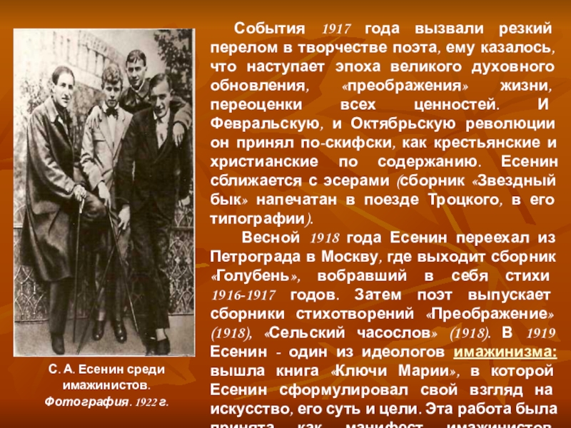 С. А. Есенин среди имажинистов. Фотография. 1922 г.